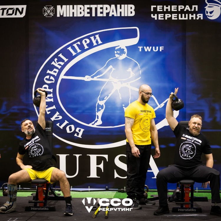 Ветерани зі значними пораненнями та ампутаціями виходили до адаптивних дисциплін: жим лежачи колоди, фронт-холд гирі, жим гирі сидячи однією рукою та утримання гантелей сидячи. Ці вправи разом з силою перевіряють координацію та психологічну стійкість.