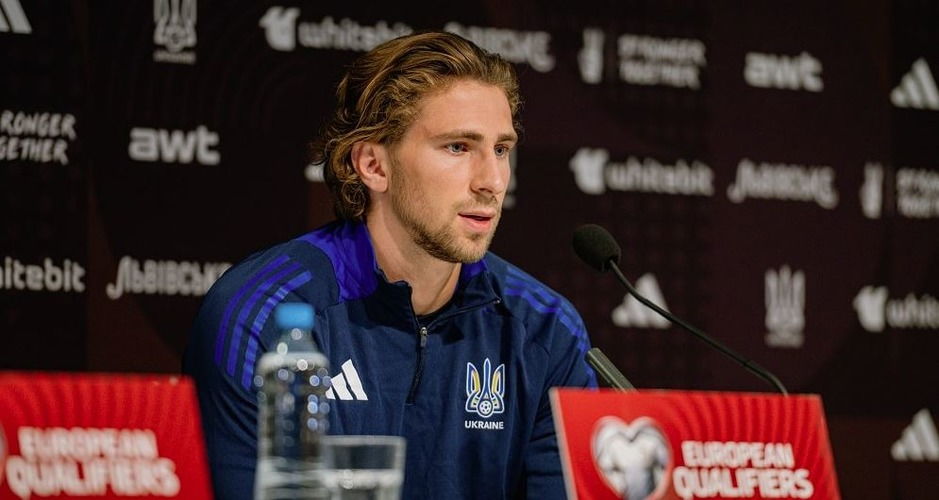 Захисник збірної України Ілля Забарний узяв участь у пресконференції напередодні матчу відбору ЧС-2026 з Азербайджаном у Кракові