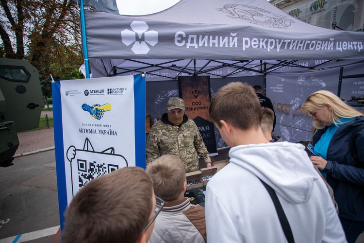 Іміджеві локації рекрутингового центру ССО зібрали біля себе чимало люду. Одні цікавилися в інструкторів виставленими технікою та обладнанням, інші — змогли побачити спорядження для бійців різних підрозділів ССО або просто дякували за службу.