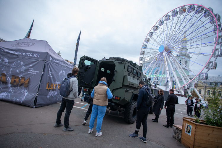 Зокрема, величезну увагу на київській локації привернув многоцільовий бронеавтомобіль BATT, один із найкращих у світі за характеристиками. Посидіти за кермом або потрапити в салон на місця десанту вишукувалася черга бажаючих.
