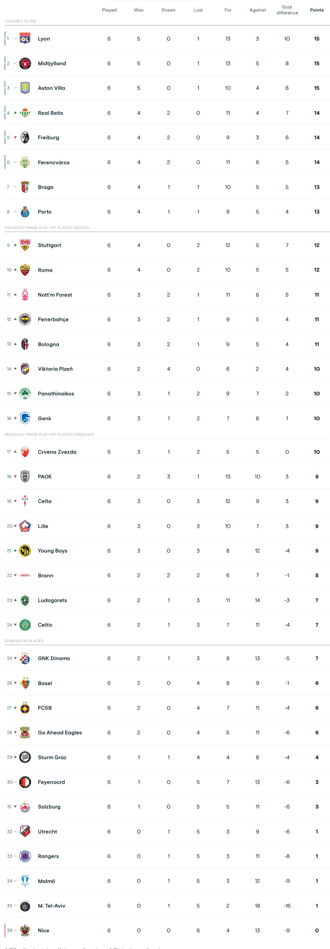 Нагадаємо регламент ЛЄ. Після закінчення основного етапу, перші вісім команд автоматично проходять до 1/8 фіналу. Команди, що фінішують з 9-го по 24-те місця зіграють в 1/16 фіналу. Команди, що посядуть 25—36 позиції закінчать євросезон.