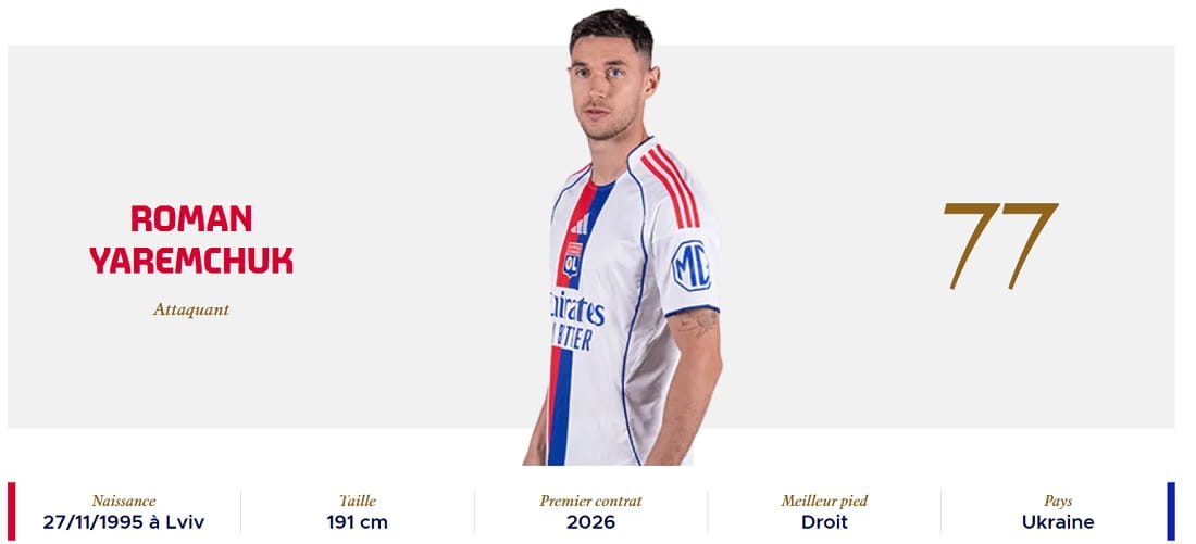 Перша світлина нападника збірної України у стані Ткачів була з футболкою з 20-м номером. Втім, вже на офіційній презентації в руках Романа була майка з 77-м номером на спині. Саме під ним Яремчук і виступатиме за французький клуб. Це підтверджує і сторінка гравця на офіційному сайті Ліона.
