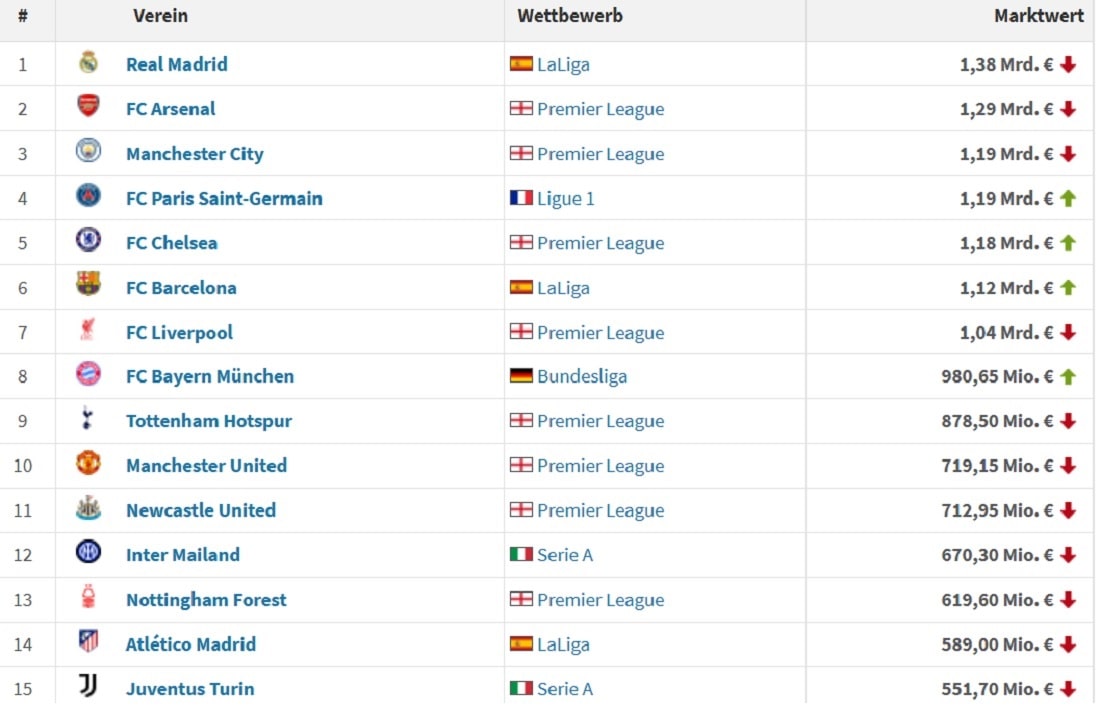 З моменту останнього оновлення вартості футболістів у топ-лігах Європи подорожчали лише ПСЖ, Челсі, Барселони та Баварії. Решта клубів втратила у вартості своїх складів.