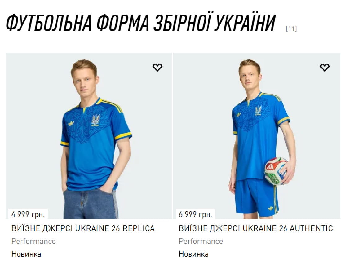 Після офіційної презентації нової виїзної форми національної збірної України з футболу з'явилася інформація про ціни на це екіпірування від adidas. Вболівальникам запропонували два варіанти ігрових футболок, які відрізняються технологіями виготовлення та вартістю.