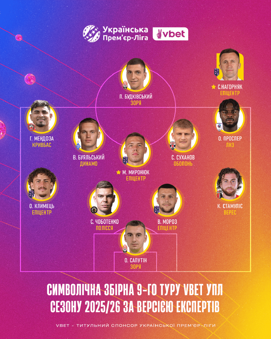 Окрім того, УПЛ традиційно опублікувала символічну збірну 9-го туру.