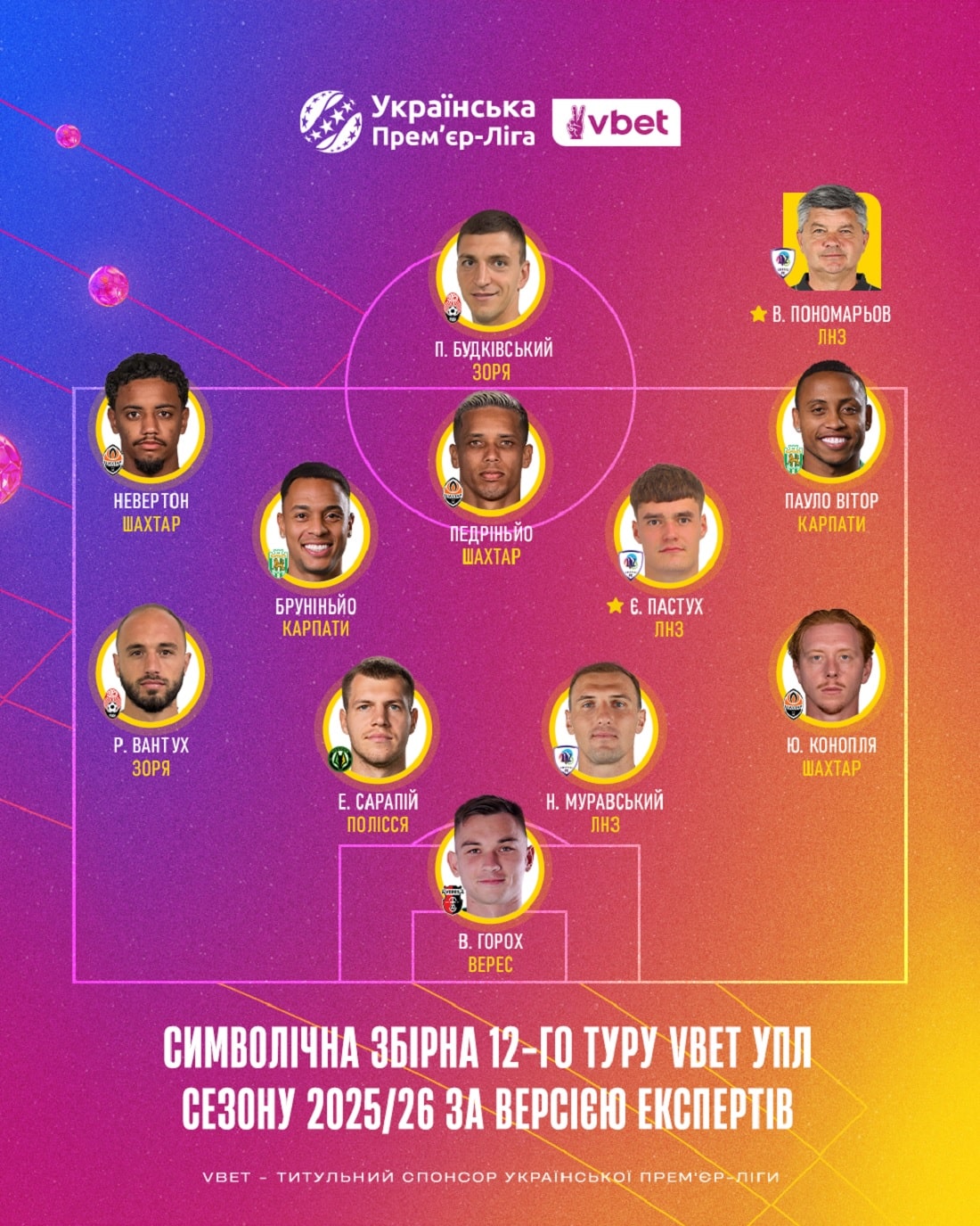 Українська Прем’єр-ліга назвала найкращих тренера, гравця і символічну збірну 12-го туру чемпіонату країни.