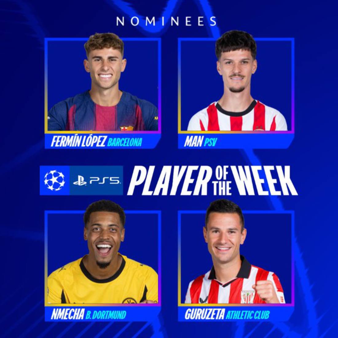 Більшістю було визнано, що ним став атакувальний півзахисник іспанської Барселони Фермін Лопес, який у матчі проти Олімпіакоса (6:1) оформив хет-трик. У голосуванні він обійшов румуна з ПСВ Денніса Мана (два голи у ворота Наполі, 6:2), німця Фелікса Нмечу з дортмундської Боруссії (два голи у ворота Копенгагена, 4:2) та іспанця Горку Гурусету з Атлетика (два голи у ворота Карабаха, 3:1).