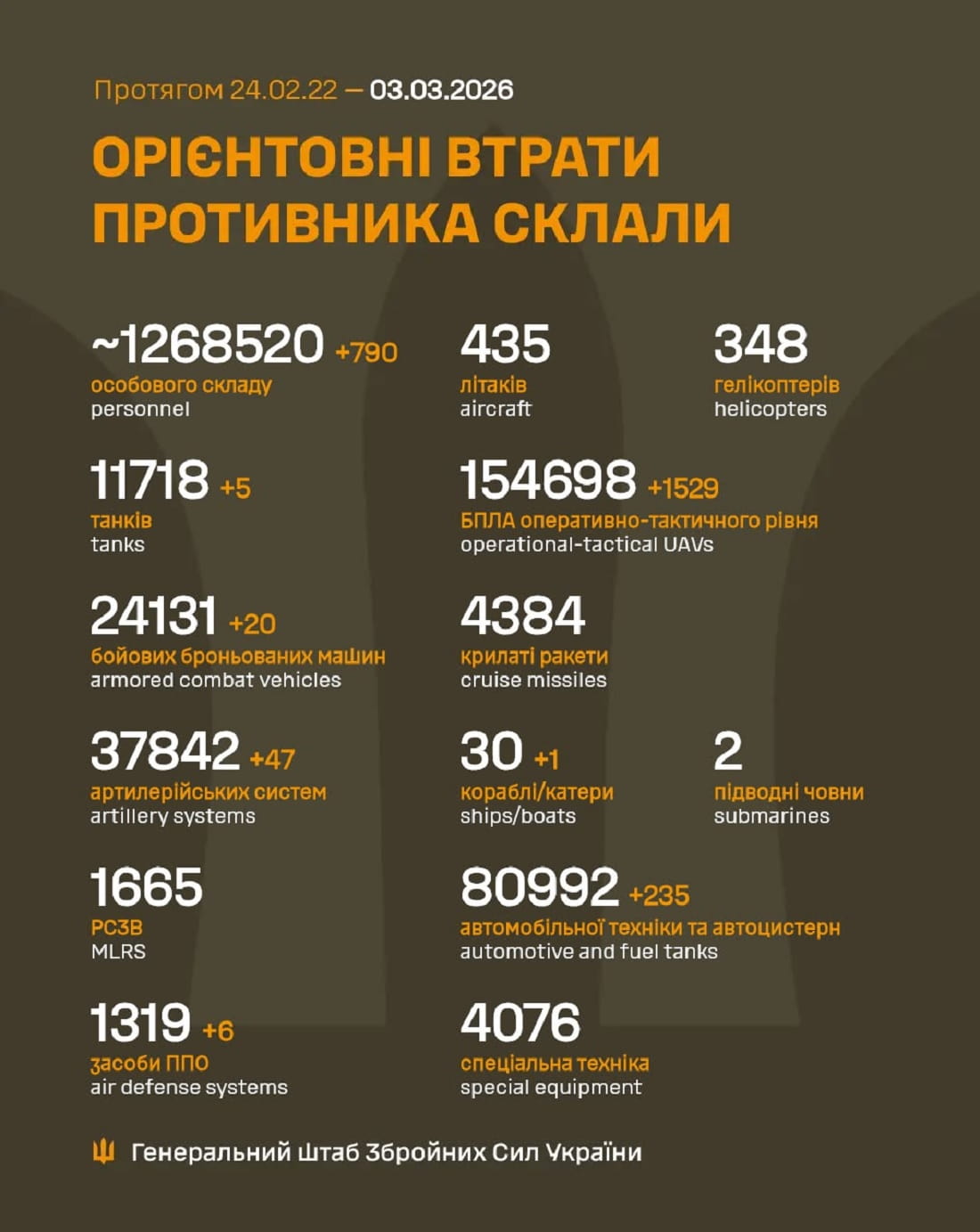 Вже мінус 1 268 520: Генштаб ЗСУ назвав свіжі дані втрат загарбників за час їхнього вторгнення в Україну