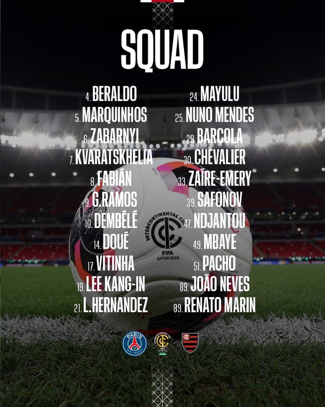 ПСЖ оприлюднив попередню заявку команди на матч Міжконтинентального кубка проти Фламенґу.